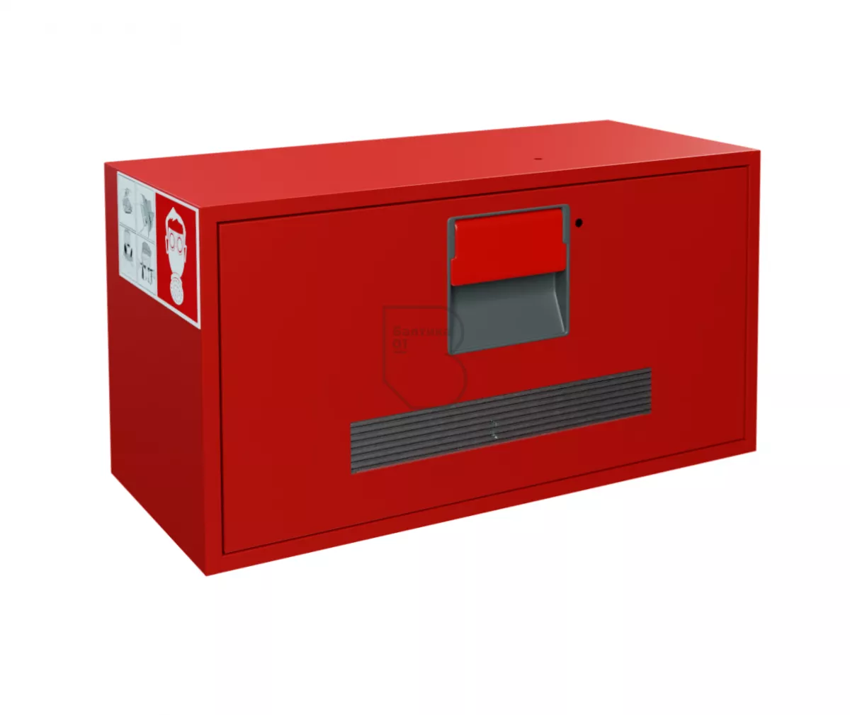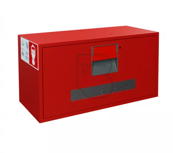 Контейнер для хранения самоспасателей Шанс Е-3 выполнен из металла. На дверце имеется смотровое окно. Контейнер закрывается на защелку.