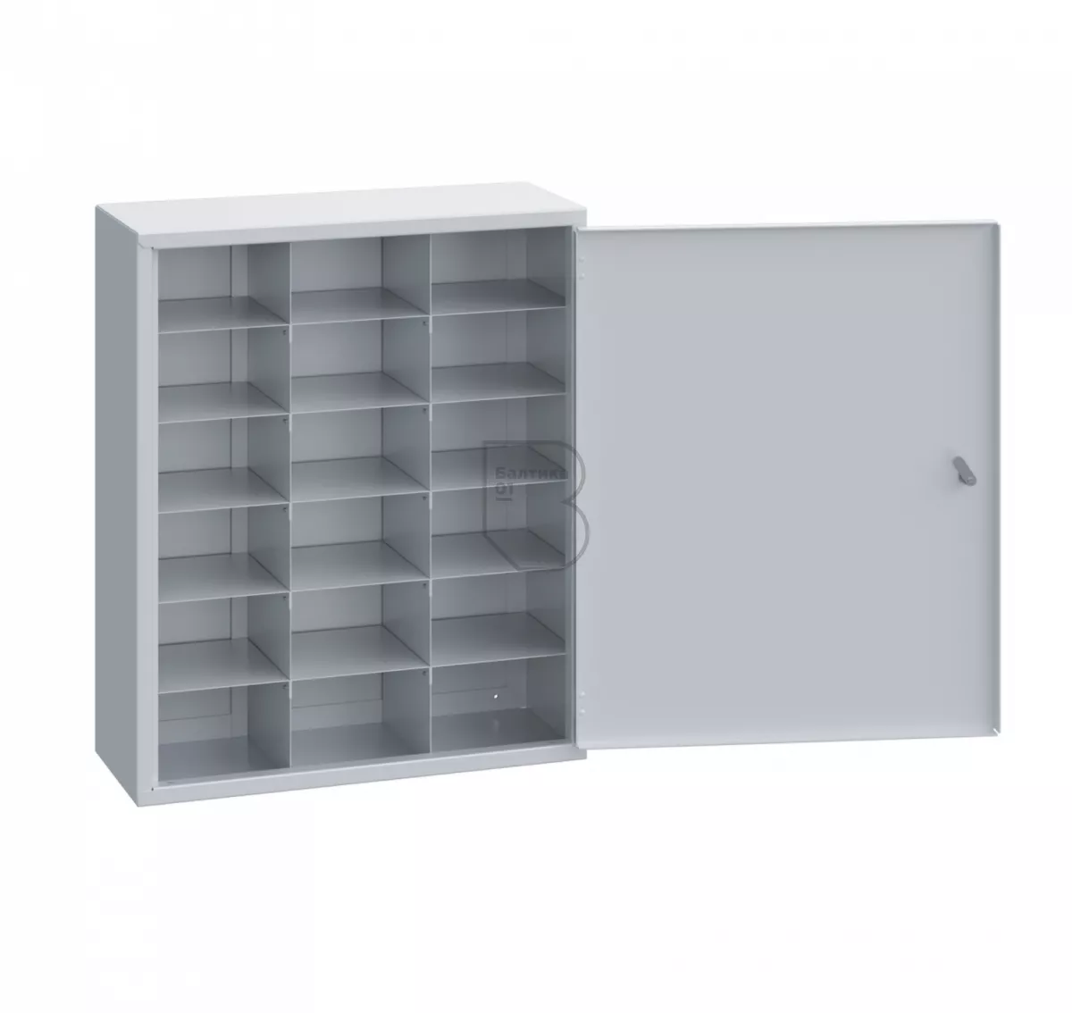 Шкаф состоит из 18 ячеек и рассчитан на 18 противогазов.
