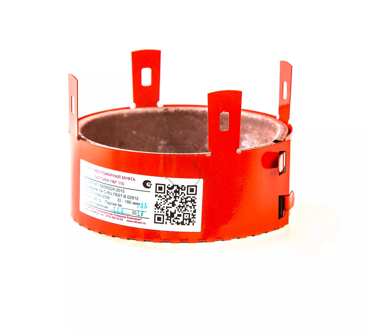 Противопожарная муфта «БАЛТИКА ПМ» 110 – предназначена для препятствия распространения пожара через места прохода труб из поливинилхлорида, полиэтилена, полипропилена сквозь перегородки и межэтажные перекрытия. В случае возникновения пожара, под воздействием высоких температур муфта противопожарная срабатывает и перекрывает отверстие в перекрытии (стене) с нормированной степенью огнестойкости до EI-150.