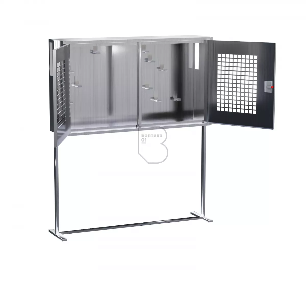 Щит пожарный со стойкой из нержавеющей стали (2 двери сетка)