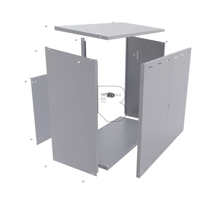 Шкаф для газовых баллонов состоит из сборно-разборного корпуса и распашных дверей. Сборка корпуса осуществляется на винтах. В задней стенке шкафа имеется проем для проведения газовой магистрали (шланга), на дверцах шкафа имеются вентиляционные отверстия. Также на дверцах имеется петля под навесной замок.