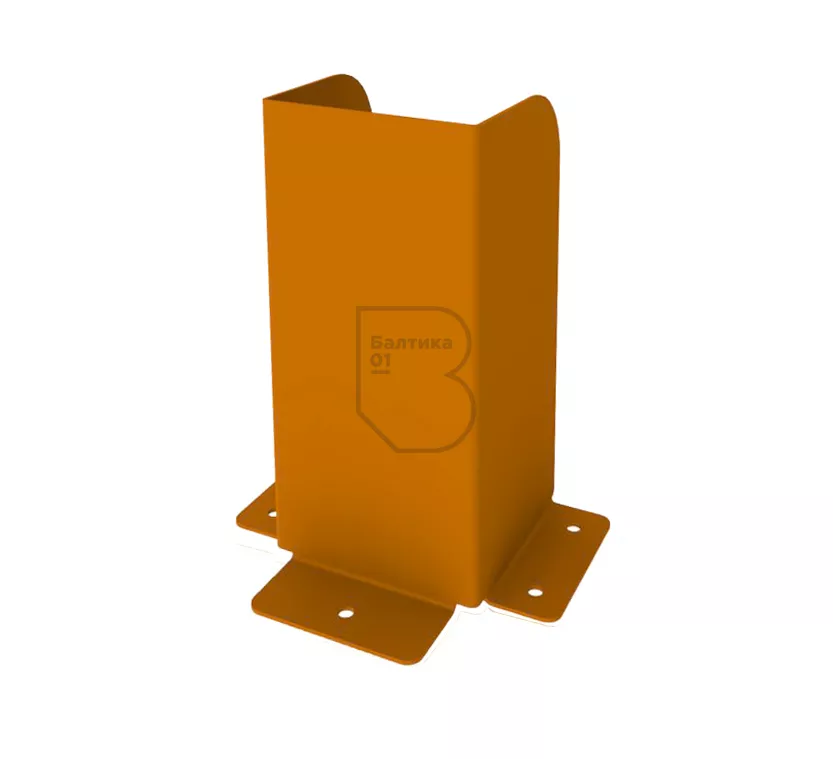 Защита для стеллажа изготовлена из листовой стали толщиной 3 мм и окрашена в оранжевый цвет.