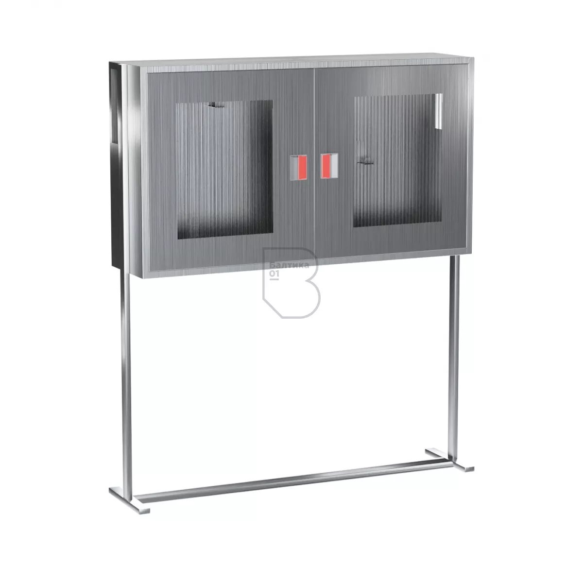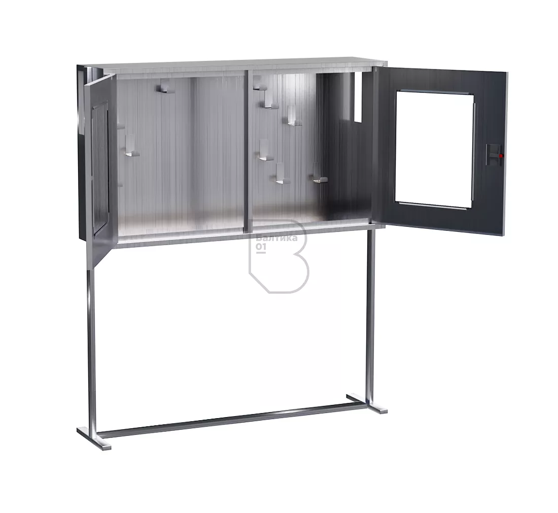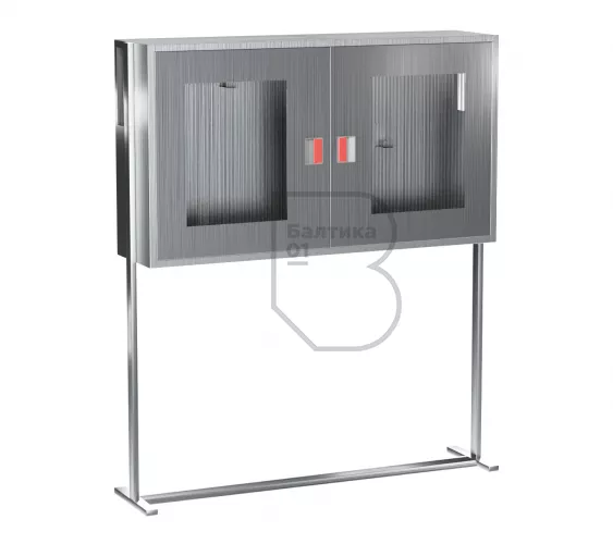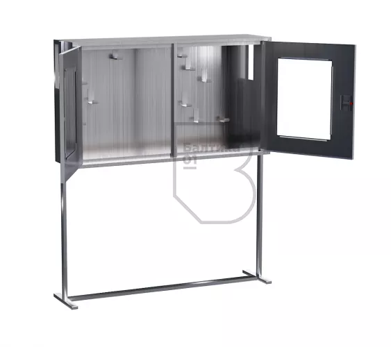Щит пожарный со стойкой из нержавеющей стали (2 двери оргстекло)