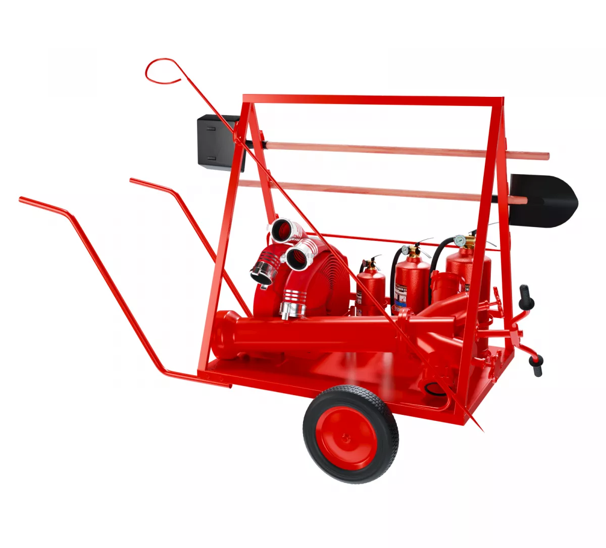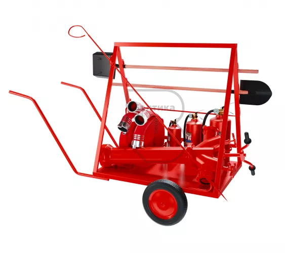 Пост пожарный мобильный передвижной предназначен для мобильного перемещения первичных средств пожаротушения к месту возгорания. Пост представляет собой тележку с колесами и съемными ручками для управления движением.