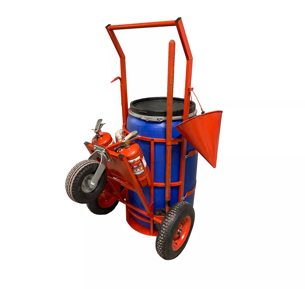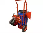Пост представляет собой тележку для размещения и перемещения на ней ручного пожарного инвентаря (лом, лопата, ведро, два огнетушителя, противопожарное полотнище), а также емкости (пластиковая бочка объемом 227л. с крышкой) к месту возгорания очага.