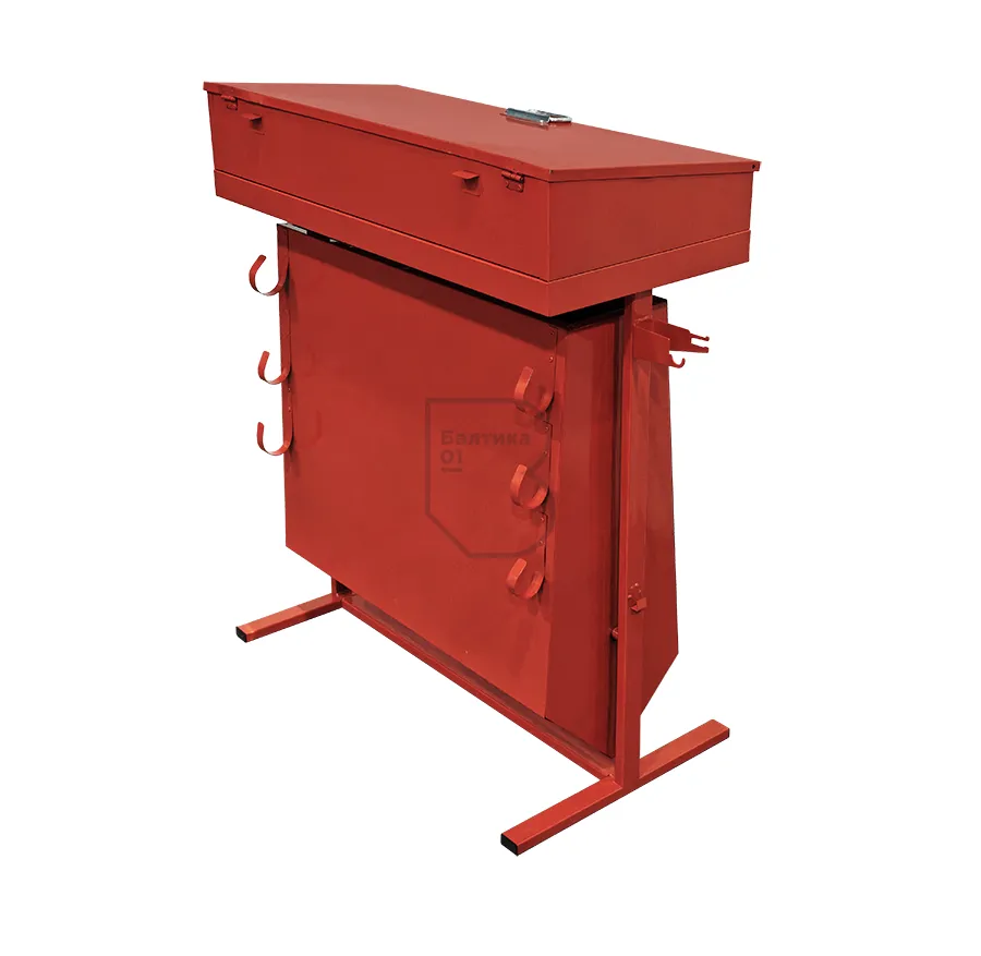 Стенд пожарный металлический «Комби» - предназначен для размещения пожарного инвентаря. Выполнен из металлического гнуто-сварного профиля и тонколистовой стали. Имеет влаго-морозостойкое порошковое покрытие. Цвет - красный. Преимущества – имеется емкость для песка, за счет своей конструкции может отдельно стоять без крепления на стену.