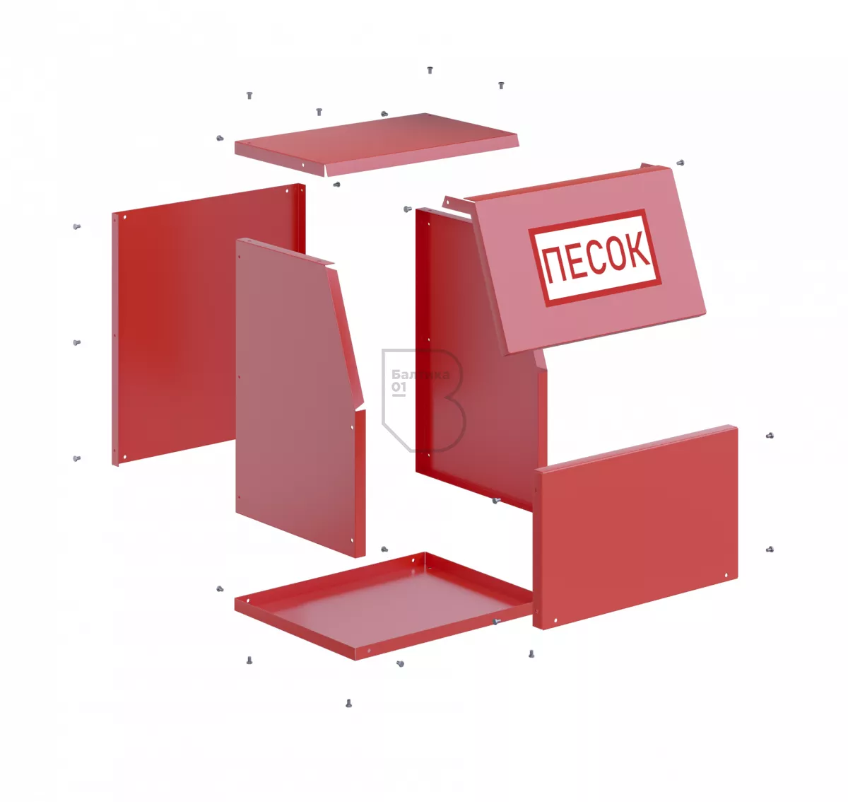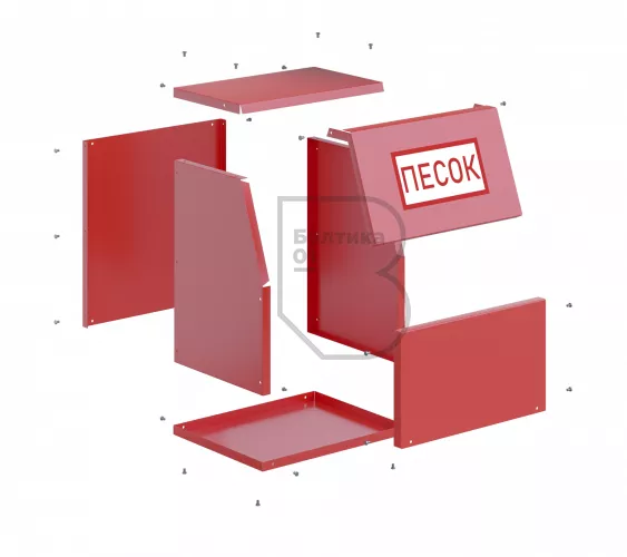 Ящик для песка 0,1 м3 сборно-разборный - предназначен для хранения пожарного песка, используемого для ликвидации возгораний и в тех местах, где существует угроза разлива легковоспламеняющихся и горючих жидкостей. Ящики применяются на автозаправочных станциях, различных предприятиях и складах.