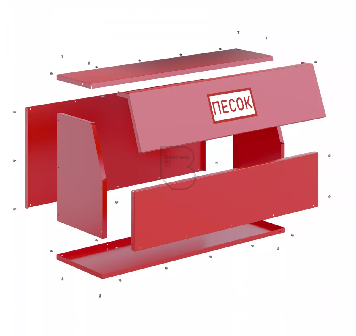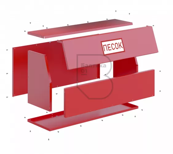 Ящик для песка 0,3 м3 сборно-разборный - предназначен для хранения пожарного песка, используемого для ликвидации возгораний и в тех местах, где существует угроза разлива легковоспламеняющихся и горючих жидкостей. Ящики применяются на автозаправочных станциях, различных предприятиях и складах.