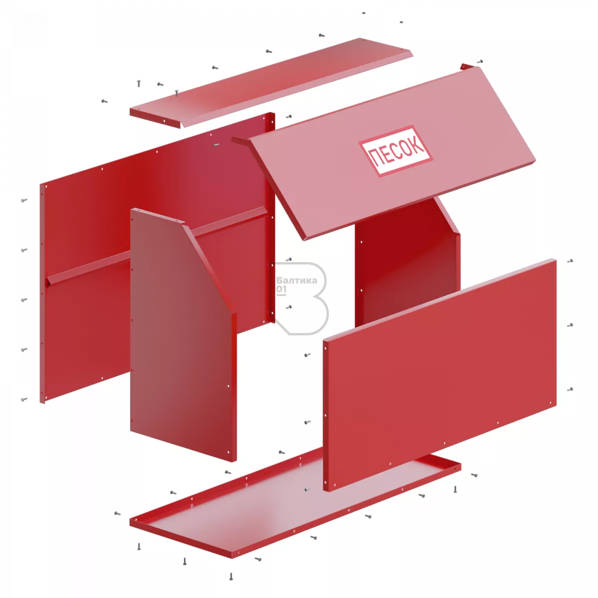 Сборно-разборные ящики выполнены из листовой стали толщиной не более 1 мм, имеют влаго-морозостойкое порошковое покрытие красного цвета.