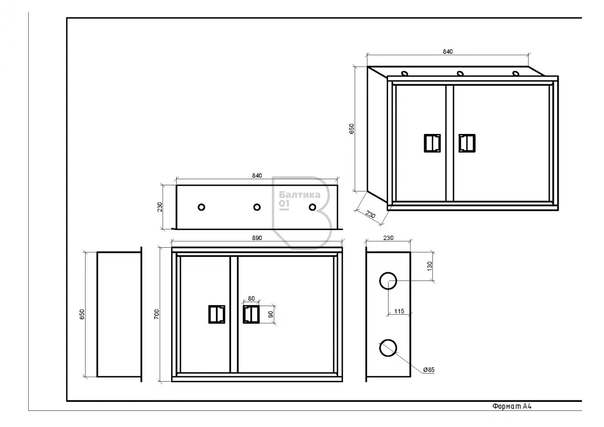 - Габаритные размеры (по корпусу), мм650х840х230