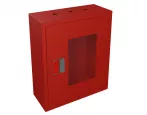 По типу монтажа – навесной, по наличию смотрового окна на дверцах шкафа – открытый, по цвету изделия – красный (RAL 3000).