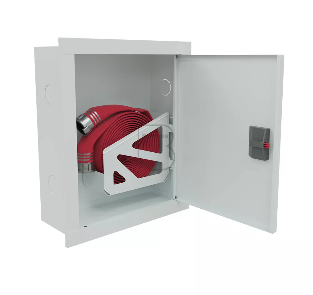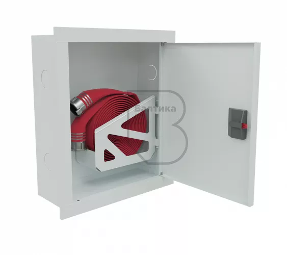 Дверца пожарного шкафа открывается на 160 градусов, открывание двери универсальное (правое и левое). Дверца имеет дополнительные загибы для усиления жесткости конструкции. На двери и корпусе шкафа предусмотрены отверстия для опломбирования шкафа. Дверь пожарного шкафа имеет запорное устройство в виде пластиковой защелки. Дверь закреплена с помощью монтажного штифта, при необходимости она может быть снята в результате простого нажатия на кнопку штифта.