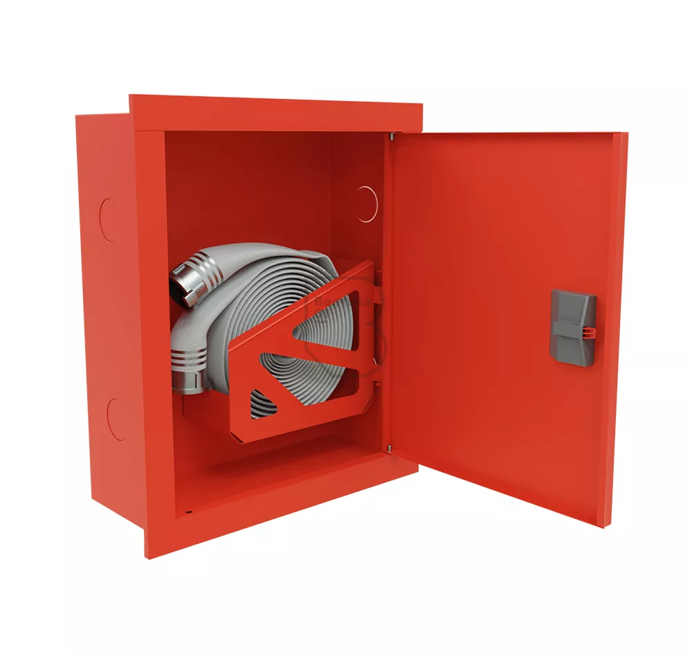 По типу монтажа – встраиваемый, по наличию смотрового окна на дверце шкафа – закрытый, по цвету изделия – красный (RAL 3000).
