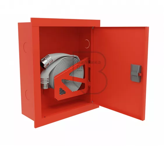 Дверца пожарного шкафа открывается на 160 градусов, открывание двери универсальное (правое и левое). Дверца имеет дополнительные загибы для усиления жесткости конструкции. На двери и корпусе шкафа предусмотрены отверстия для опломбирования шкафа. Дверь пожарного шкафа имеет запорное устройство в виде пластиковой защелки. Дверь закреплена с помощью монтажного штифта, при необходимости она может быть снята в результате простого нажатия на кнопку штифта.