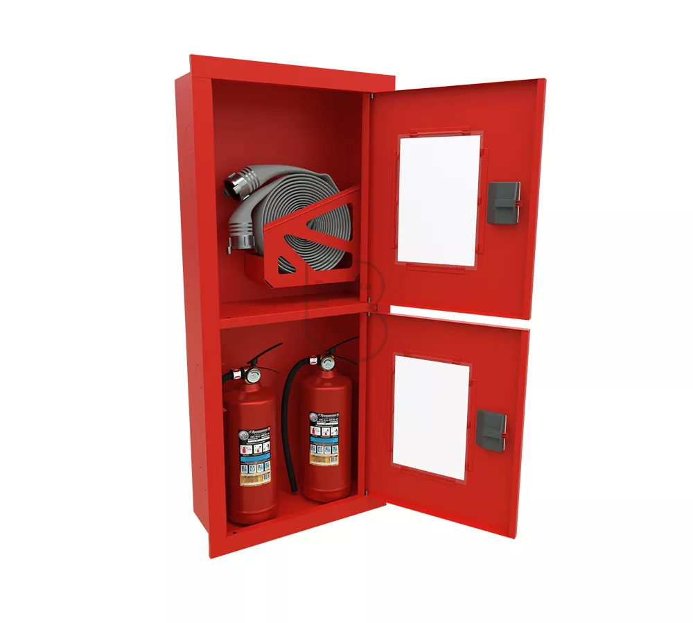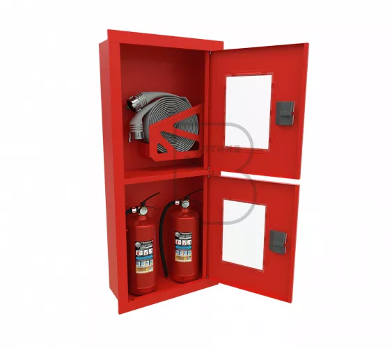По типу монтажа – встраиваемый, по наличию смотрового окна на дверцах шкафа – открытый, по цвету изделия – красный (RAL 3000).