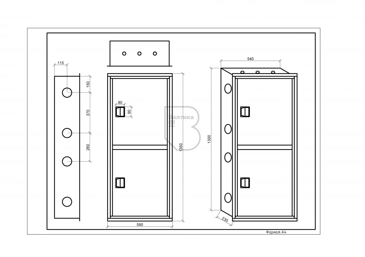 - Габаритные размеры (по рамке), мм1350х590х230