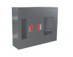 Дверцы пожарного шкафа открываются на 160 градусов. Имеют запорное устройство в виде пластиковой защелки.