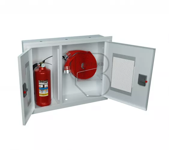 Дверцы пожарного шкафа открываются на 160 градусов. Имеют запорное устройство в виде пластиковой защелки. На каждой дверце имеется смотровое окно со вставкой из поликарбоната.