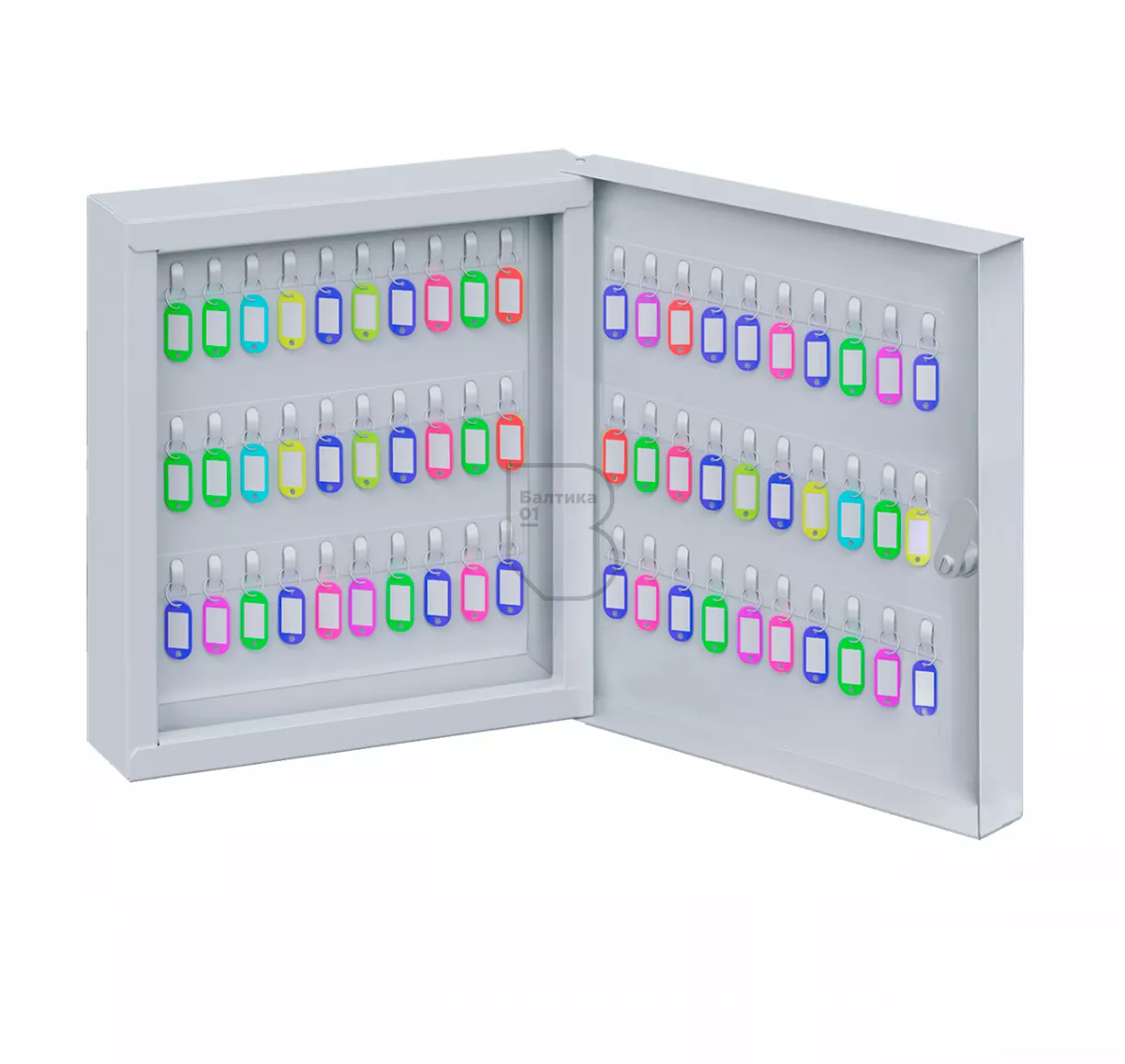 Ключница К-60 является удобным и компактным приспособлением для одновременного хранения 60 ключей от различных помещений. В задней стенке шкафчика имеются отверстия для крепления к стене. Ключница изготовлена из металлического листа, в дверце используется "почтовый" замок.