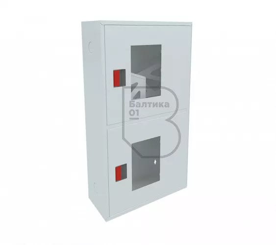Дверца пожарного шкафа открывается на 160 градусов, открывание двери универсальное (правое и левое). Дверца имеет дополнительные загибы для усиления жесткости конструкции. На двери и корпусе шкафа предусмотрены отверстия для опломбирования шкафа. Дверь пожарного шкафа имеет запорное устройство в виде пластиковой защелки. Дверь закреплена с помощью монтажного штифта, при необходимости она может быть снята в результате простого нажатия на кнопку штифта. На каждой дверце имеется смотровое окно со вставкой из стекла.