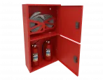 Шкаф пожарный ШПК-320-12 НЗК Премиум изготовлен из листовой стали толщиной не более 1 мм. Окраска - порошковая эпоксиполиэфирная глянцевая. С двух сторон имеются перфорированные отверстия для ввода пожарного водопровода. Перфорированные отверстия выполняют также функцию вентиляции шкафа. В верхнем отсеке расположены 2 усиленные кассеты (турели), которые крепятся на усиленных кронштейнах. Нижний отсек предназначен для хранения двух огнетушителей до 10 кг. Отверстия на задней стенке шкафа служат для крепления шкафа к стене, а вид отверстий позволяет удобно позиционировать шкаф при креплении. Корпус шкафа легко закрепляется обычными анкерными болтами либо дюбелями с саморезами к стене.