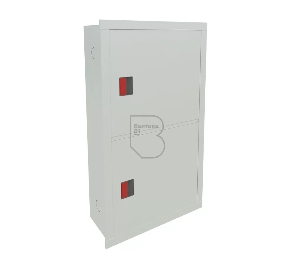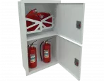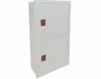 Шкаф пожарный ШПК-320-12 ВЗБ Премиум изготовлен из листовой стали толщиной не более 1 мм. Окраска - порошковая эпоксиполиэфирная глянцевая. С двух сторон имеются перфорированные отверстия для ввода пожарного водопровода. Перфорированные отверстия выполняют также функцию вентиляции шкафа. В верхнем отсеке расположены 2 усиленные кассеты (турели), которые крепятся на усиленных кронштейнах. Нижний отсек предназначен для хранения двух огнетушителей до 10 кг. По периметру шкафа имеется наличник шириной 30 мм для оформления стыка шкафа и ниши.