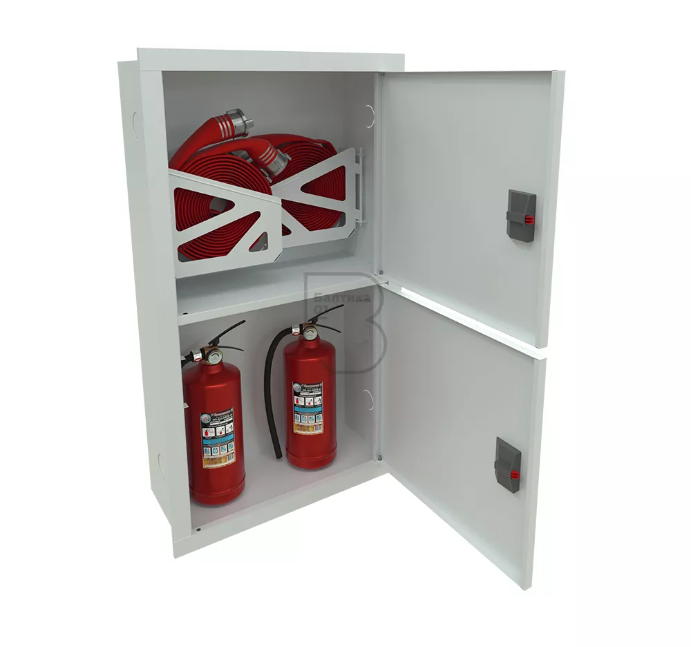Шкаф пожарный ШПК-320-12 ВЗБ Премиум – предназначен для размещения и хранения двух рукавов пожарных в сборе, двух пожарных вентилей (клапанов) и двух огнетушителей до 10 кг. Шкаф оборудован двумя кассетами рукавными (в верхнем отсеке шкафа размещаются две кассеты).