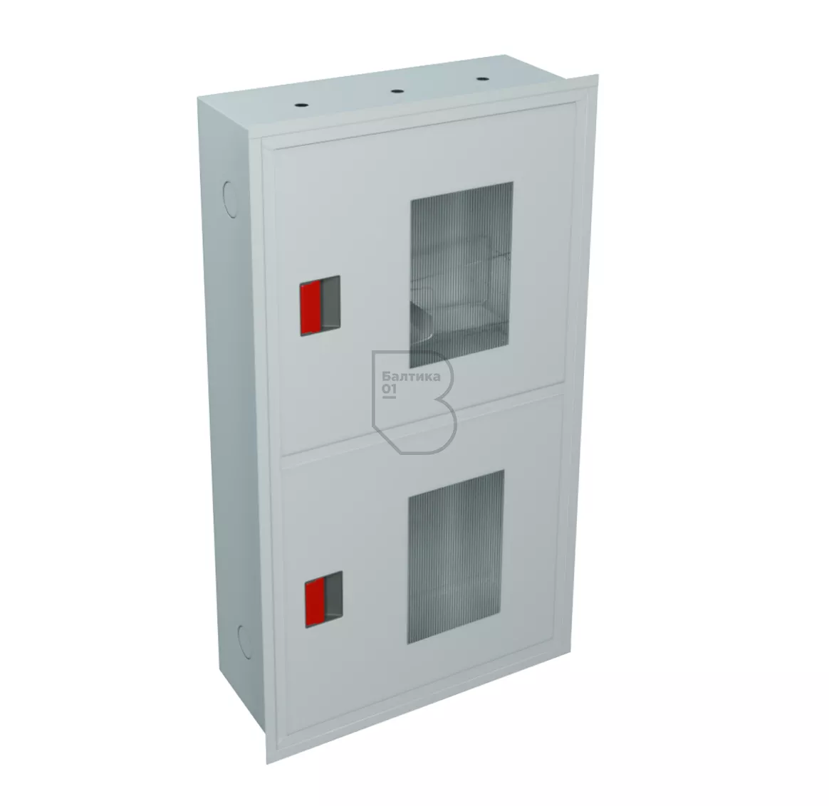 Шкаф пожарный ШПК-320-12 ВОБ изготовлен из листовой стали толщиной не более 0,6 мм. Окраска - порошковая эпоксиполиэфирная глянцевая. С двух сторон имеются перфорированные отверстия для ввода пожарного водопровода. По периметру шкафа имеется наличник шириной 25 мм для оформления стыка шкафа и ниши.