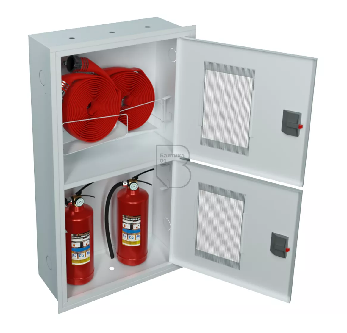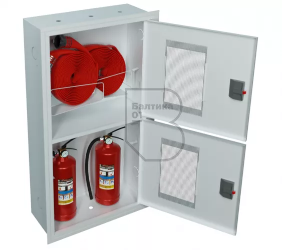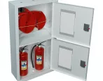 Шкаф пожарный ШПК-320-12 ВОБ – предназначен для размещения и хранения двух рукавов пожарных в сборе, двух пожарных вентилей (клапанов) и двух огнетушителей до 10 кг. Шкаф оборудован двумя кассетами рукавными (в верхнем отсеке шкафа размещаются две кассеты).