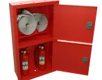 Шкаф пожарный ШПК-320-12 ВЗК – предназначен для размещения и хранения двух рукавов пожарных в сборе, двух пожарных вентилей (клапанов) и двух огнетушителей до 10 кг. Шкаф оборудован двумя кассетами рукавными (в верхнем отсеке шкафа размещаются две кассеты).