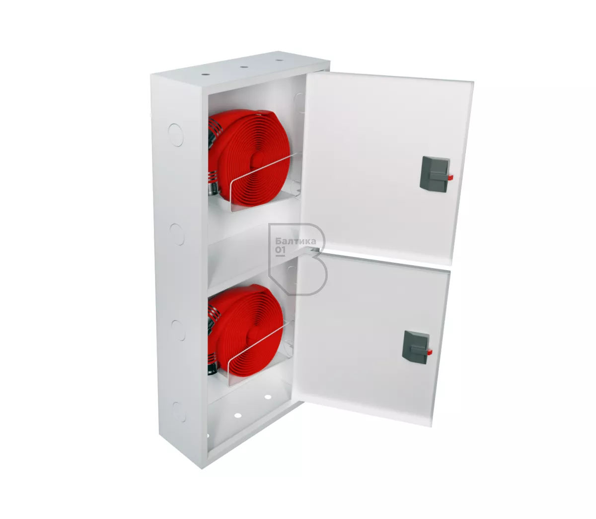 Дверцы пожарного шкафа открываются на 160 градусов. Имеют запорное устройство в виде пластиковой защелки.