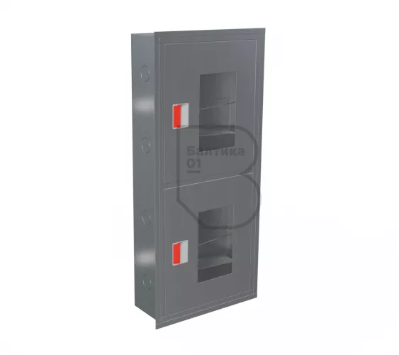 Дверцы пожарного шкафа открываются на 160 градусов. Имеют запорное устройство в виде пластиковой защелки.