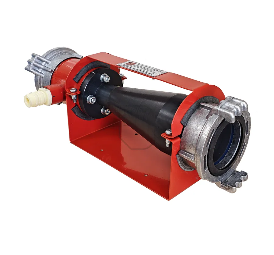 Принцип работы пеносмесителя заключается в следующем: вода под рабочим напором поступает в сопло, а из него в горловину диффузора корпуса. В полости корпуса, примыкающей к соплу, создается разрежение, благодаря которому пенообразователь по рукаву подсасывается в диффузор корпуса, где он смешивается с водой, образуя рабочий раствор.